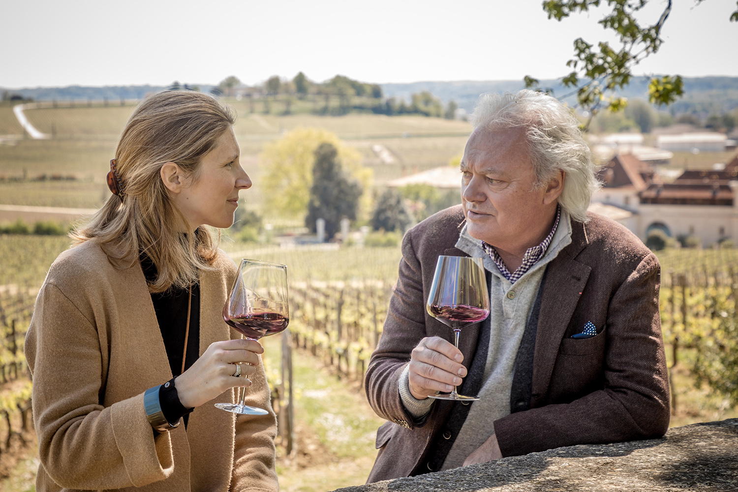 Avec Sandrine Garbay, directrice générale du Château Guiraud, Laure de Lambert Compeyrot, propriétaire du Château Sigalas-Rabaud, Jérôme Moitry, propriétaire du Château Climens, et Miguel Aguirre, directeur du Château La Tour Blanche.